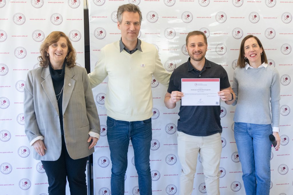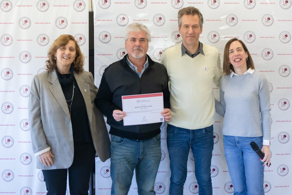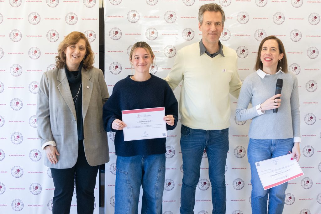 En el acto estuvieron presentes la Rectora Dra. Andrea Savoretti, el Vicerrector de Planeamiento y Bienestar Universitario, Lic. Mariano Porras, y la docente Victoria Gallardo Batista.