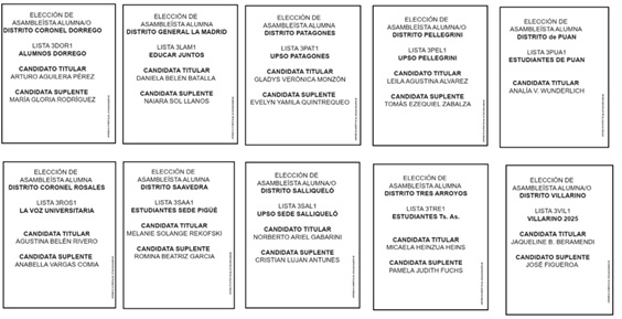 Se han recibido postulaciones para una sola lista en cada categoría, salvo la de asambleísta alumno de C. Suárez en la que no hubo presentación de lista.