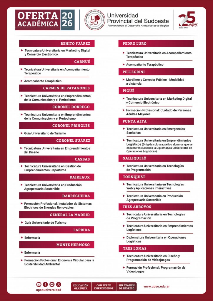 ► Más información en el siguiente link: www.upso.edu.ar/ingreso/