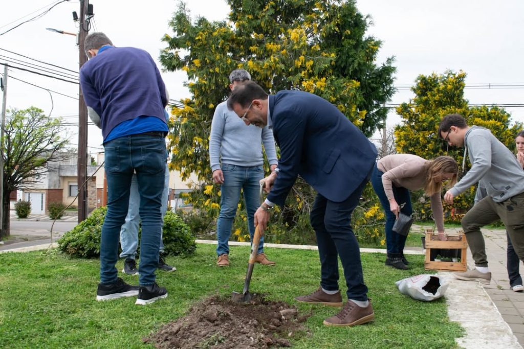 se llevó a cabo una jornada de plantación de árboles nativos (Molle y Espinillo) en la Sede UPSO de Pigüé.